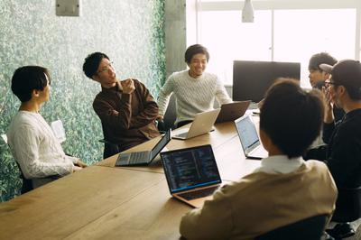 エンジニアのスクラムミーティング風景。
