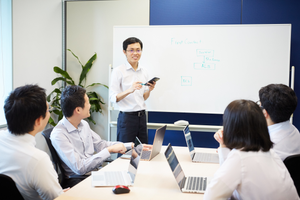 ベトナムスタッフから新規開発中のAI製品について説明してもらっています。