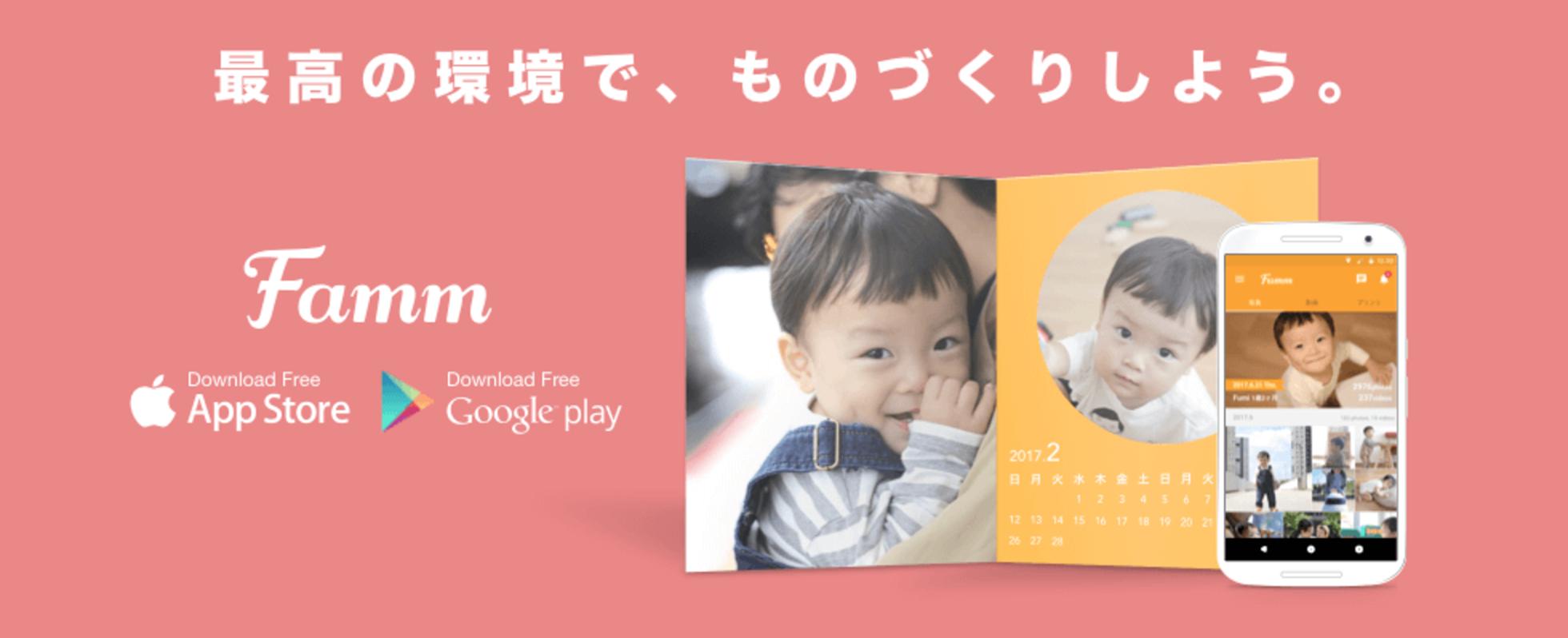 家族アプリFammは容量無制限の写真動画共有と、アルバムやDVDなどの様々なオリジナル商品を作成できるアプリ