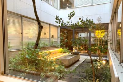 桜丘町の一角。リノベーションしたオフィスのエントランス。104号をお呼び出しください。近所に、おしゃれな店多い。