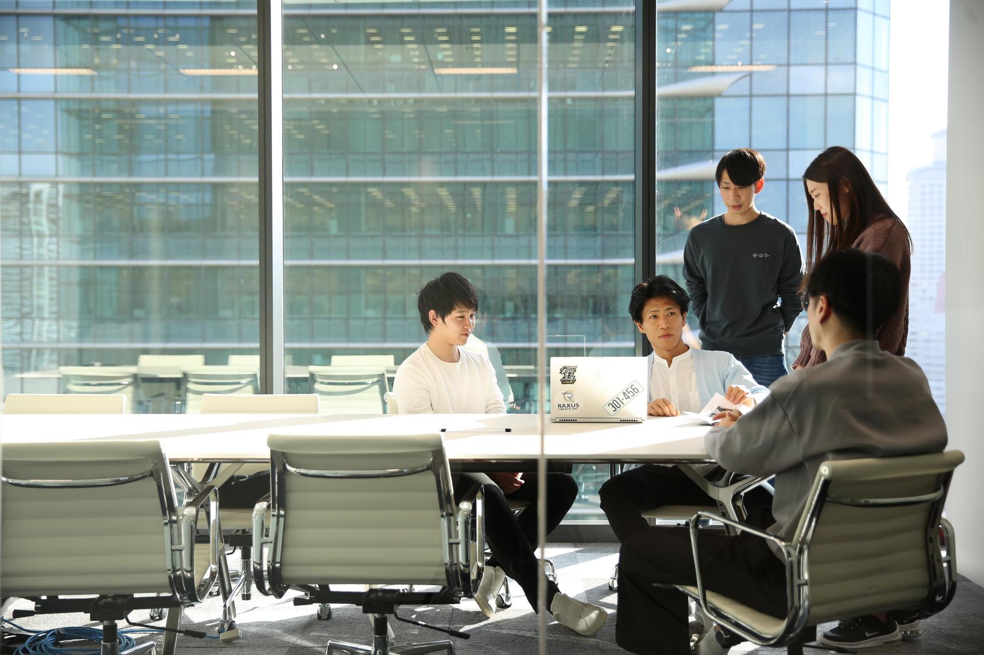 本社は、グランフロント大阪タワーB 18F。社内にはWeb制作・マーケティング、システム開発、セールス、コーポレートと全ての部署がワンフロアで仕事をしており、それぞれ意見を共有しながら迅速に改善をする等、自社サービスを提供する事業会社としての強みを活かし、フラットな組織で迅速な意思決定を行い運営しています。
