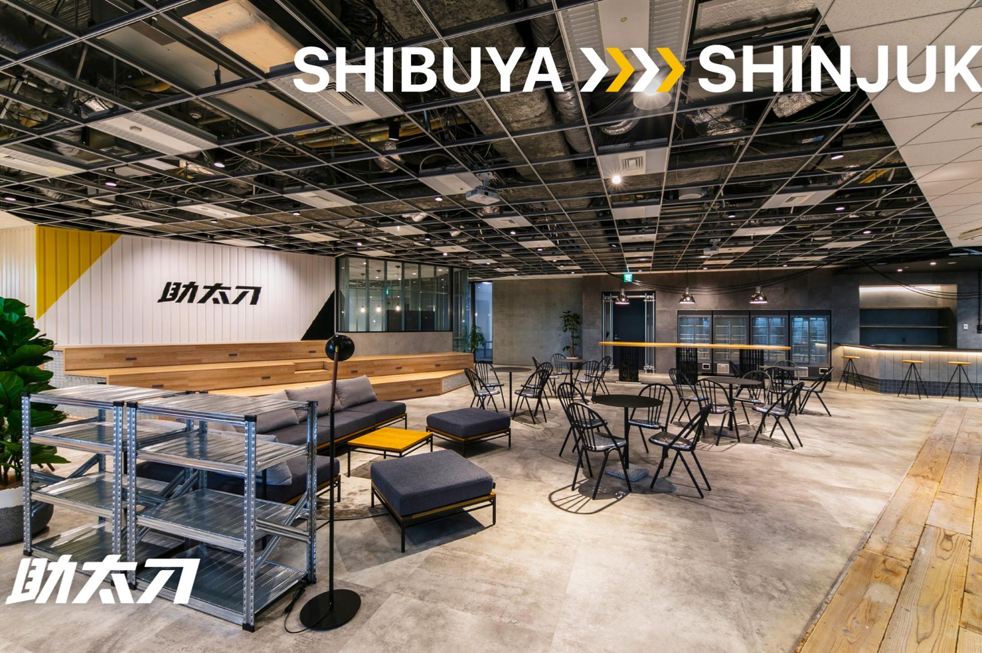 2022年8月に移転した新オフィス。「工事中」をテーマとした武骨でかっこいい空間で働くことができます。助太刀もまだまだ「工事中」、ミッション実現に向けて尽力して参ります。