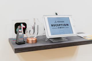 受付にはこれまでに頂いた盾などを飾っております。