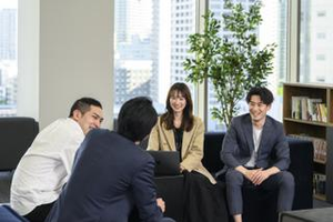 こだわりのオフィス勤務。チームの目標に向かい、コミュニケーションを欠かさない。