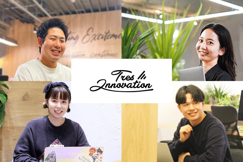 みなさん、初めまして。 元美容師、そして前職からの挫折から開き直りで独立して Tres Innovationを創業した塚本です^^笑 自分はアプリ広告・アプリ制作、Youtuber事業、広告関連をメインで 営業をしております。 弊社の特徴としては基本的に自由。 自由というと聞こえがいいですが、 仕事としては成功するのも、腐るのも自分次第という事です。 どれだけ自分の信念をもって業務に取り組めるか、 そしてどれだけ新しい事が提案できるかで自分のポジションが変わってきます。 先に入った先輩がえらいとかそんなの関係ない会社です。 実力がある人がどんどん上にのし上がる会社なので、 自分に自信がある人、ビジネスが大好きな人、新しい事を考えるのが好きな人、 大歓迎です!! Tres Innovationで共に会社を大きくしていきましょう♪