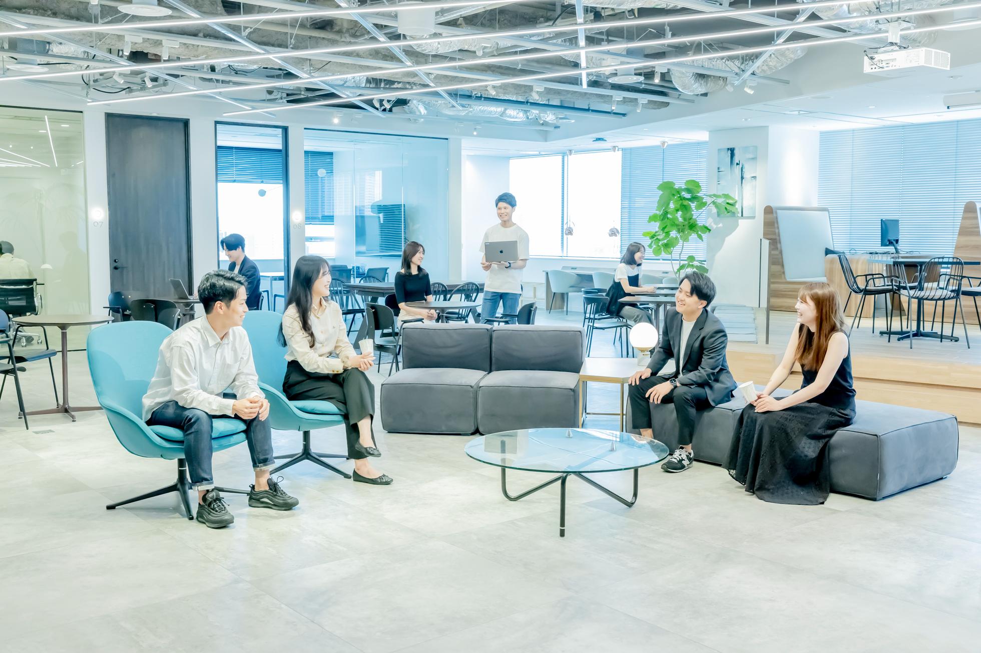 オフィスではコミュニケーションが活発に行われており、至る所で議論が交わされています。