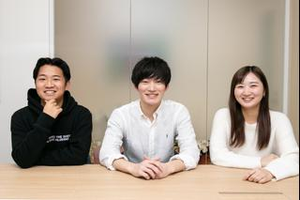 左から順に:取締役CFO 平岡・代表取締役 佐藤・取締役COO 山本