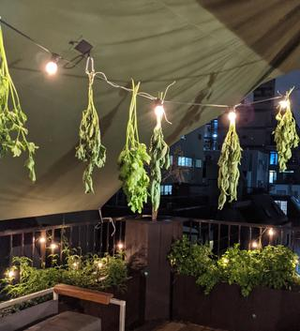 テラスに植えたミントを乾燥させています