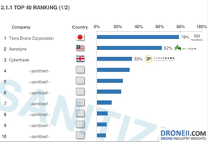 世界的なドローン市場調査機関Drone Industry Insightsによる「ドローンサービス企業 世界ランキン グ2020」において、産業用ドローンサービス企業として「世界1位」に選出