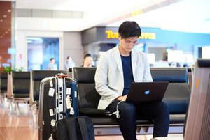 海外との取引に向かう弊社代表。