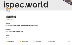 はじめまして、株式会社ispecの採用担当です。 皆様とお話しできる日を楽しみにしています! ============================= - 採用情報について(ビジョン・バリュー・価値観など) https://ispec.notion.site/Careers-3bb5e3d2ce6f40ebb60b7cb49a2f821e - テックブログ https://zenn.dev/ispec =============================