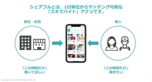 Share(共有する) + full(満る、溢れる) 個人の貴重な時間や経験を、必要とする相手(法人)と、「すぐに・自由に・簡単に」分かち合える場をつくり、互いのニーズが満たされていく状態を創りだす。 そんな想いを込めた会社です。