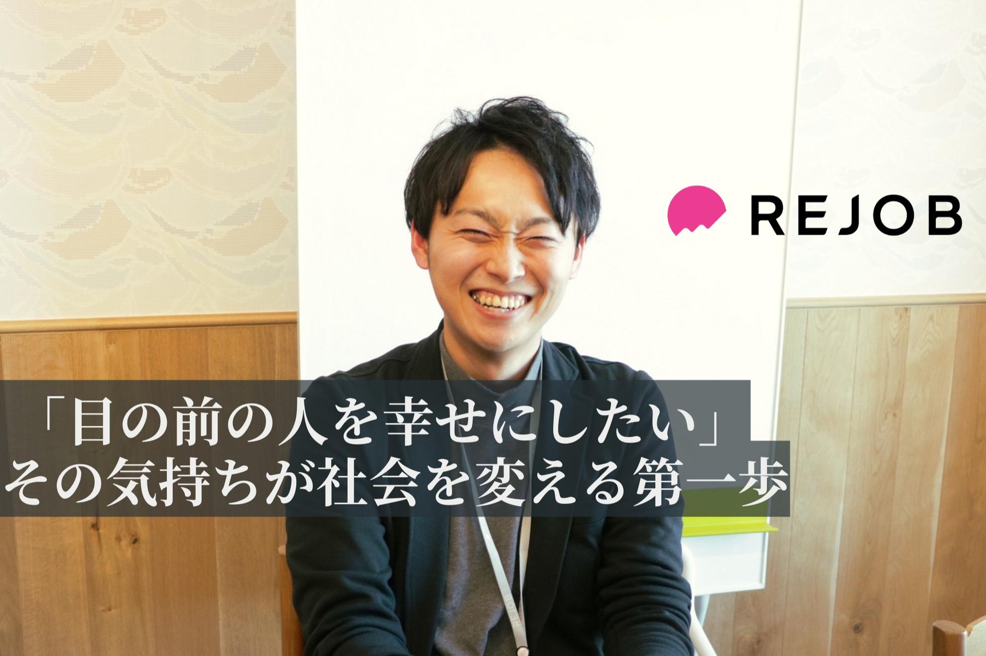 2014年(22歳) 株式会社リジョブ 新卒入社 1年目(22歳):営業配属3ヵ月目 全国1位 2年目(23歳):介護事業部立ち上げ マネージャー 4年目(25歳):大阪支社 支社長 リジョブに入社した理由 ・1つの方法に囚われず、社会的な目的に対し様々なアプローチを続けたい ・「世界」や「社会」を主語に自らの夢を語り続けたい。 ・先輩たちが本当にかっこよく見え、同じ目線に立ってみたいと思ったから。 高校までサッカーに打ち込み、大学で軽音楽サークルに入り楽しく過ごす。 ボランティア活動に勤しんだり、海外留学で人生観を養うとか、そんなことは 全然してこなかった、ものすごく”おもしろくない”人間でしたが、 リジョブの説明会で 「googleは人類を進化させてきた。 それは人類の腕を4本にしたりとか、足を8本にしたりとかそういうことではなく、 情報処理のスピードにおいて、それまで10年かかっていたことが10秒でできるようにした。それにより人類があらゆることに時間を使えるようになった。そういった価値を与え続ける企業を目指す」 この話に心が躍りました。 そして入社するころには、 僕も、人生を賭けて働き続けるのであれば、世の中の人たちに多くの選択肢を与え、 それによって心豊かな人たちを増やして生きたいと、心に決めていました。 そして入社後は、それがより具体的にイメージができるビジョンが掲げられ、 心豊かさ溢れる社会を実現していくことに、より一層ワクワクしました。 会社がそれを掲げ続けているおかげで、困難にぶつかるたび、 これを乗り越えたらどんな視界が拡がって、どんな社会に近づくことができるのだろうと、本気のワクワクを感じながら働けてます。