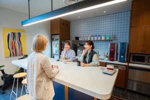 新しいオフィスにはカフェスペースがあります。メンバーが息抜きにコーヒーを淹れたりしています。