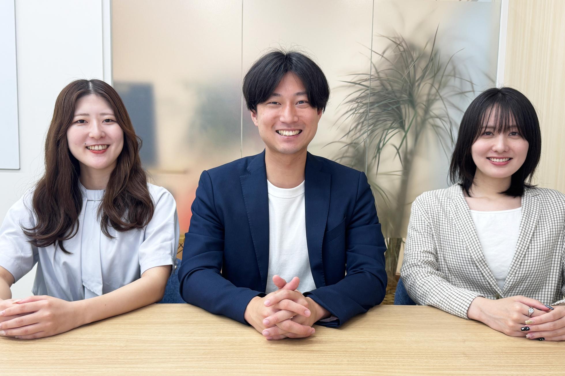 左から順に:取締役CFO 平岡・代表取締役 佐藤・取締役COO 山本