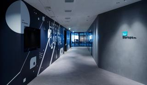 オフィスの中心には、左右両袖13メートルに及ぶ起業家などの挑戦者がプレゼンテーションを行う場「THE STAGE」を配置し、エントランスから続く通路には、当社グループが掲げる「ハイブリッドキャピタル」へ融合・進化するイメージを表現した全長16.5メートルのアートウォールを当社Tech Lab. 所属デザイナーの長峰幸世がデザインしました。