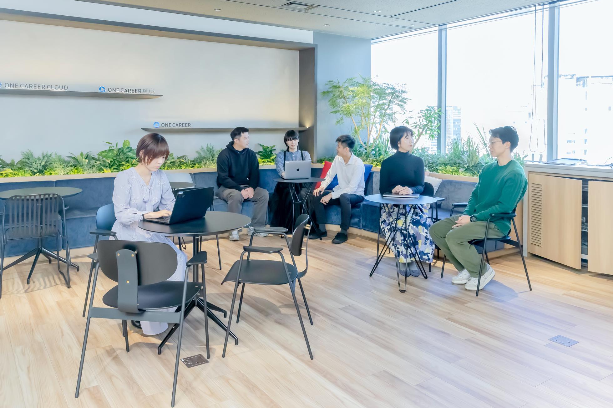 オフィスではコミュニケーションが活発に行われており、至る所で議論が交わされています。