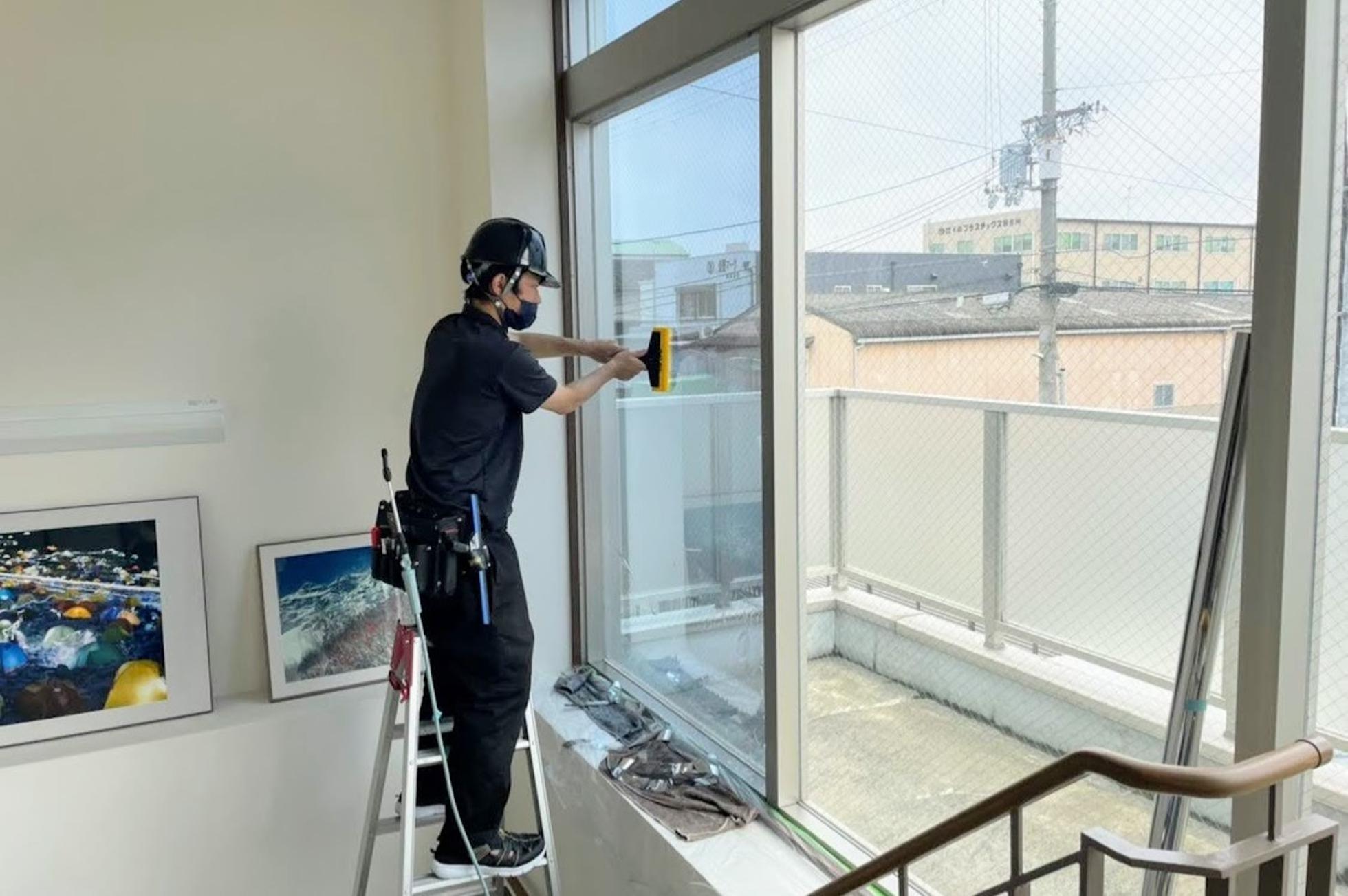 建築窓ガラス用フィルム施工風景