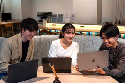 オフィスでのインターン生の様子。大学の垣根を越えたチームワークの良さには自信があります!