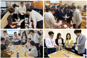 ゲーム体験の様子(ビジネスゲームは数十人規模の参加者が数名単位のチームに分かれて取り組みます。ゲームが進むに連れて、場は盛り上がり、誰もが席を立ち、主体性を発揮します)