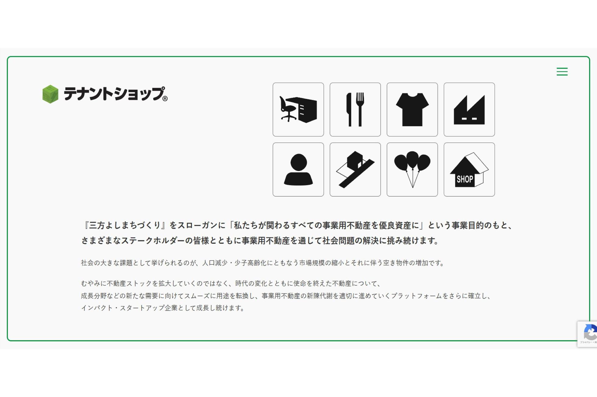 「テナントショップネットワーク」は2012年よりサービスを開始させていただき、現在250店舗を超える加盟店様にご利用頂くまでに成長し、事業用不動産専門の検索サイトとしては、さまざまなステークホルダーの皆様に類なきプラットホームとして利用いただいています。月間のページビューもBtoBの業界では異例の150万を超え、居住用不動産と比べ非効率なマッチング色が根強く残っている事業用不動産の取引に一役を担っています。