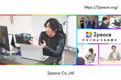 ■オカンのようにお節介で温かく■ 仕事は相手があって初めて成り立つもの。 自分に目を向けるのではなく、他人を思いやれる人間であり続けます。 ▍人財の力で企業の発展に役立ち、豊かで明るい社会づくりに貢献する。 私たちは「人間力」にフォーカスして、人財の皆さんにしっかりと指導、教育を行っています。 人財には2peaceで働くメンバーだけでなく、これから仲間になる方、2peaceから羽ばたいていく方すべてを含みます。スキル・技術の大切さも理解しつつ、何よりも人間性のある人財を輩出してまいります。 ■起業から今につながるストーリー■ 当社代表が社会人人生を歩み始めた当時、自分のために勉強していた学生時代とは大きく変わり、社会では相手の満足度がそのまま自分に跳ね返ってくる感覚を知ることになります。セールスでも自分が売りたいものを売るのではなく、まずは自分を知ってもらい、自分のファンになってもらうことの大切さに気付きました。しばらくして体調を崩し、働くことの大変さ、尊さ、難しさを実感します。 世の中には自分と同じような思いを抱く人がいるはず。 そうした人たちの力になりたい。 自分だからできることがある。 そうは言っても企業に人材を紹介するだけでは、私がやる意味がないだろう。 ならば――。と社会貢献できる事業を結び付けて現在の2peaceを立ち上げます。 ■解決したい問題■ いじめ・不登校など学校にまつわる問題について行政や企業のアプローチが行われていますが、認知件数・生徒数はそれぞれ増加しています。これらの問題には学生時代の過ごし方が深く関わっていると私たちは考えました。実際の活動として当社事業の一環で学校を回って研修を実施し、不登校の状態にいた生徒が通学・登校できるようになったケースもあります。 この取り組みを就職活動につなげれば、学生本人が社会に出て誰かの役に立てるようになります。地方で行えば地域に活力が生まれ、いずれ過疎化が解消されていくはずです。 2peaceは組織体制を整えつつ事業会社を立ち上げ、雇用を賄える環境をつくり、ゆくゆくは地方での人材育成を開始。リモートでも働ける環境をつくっていく所存です。