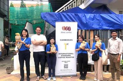 創業するきっかけになった、カンボジアで障がい者雇用事業展開するサミスさんと。
