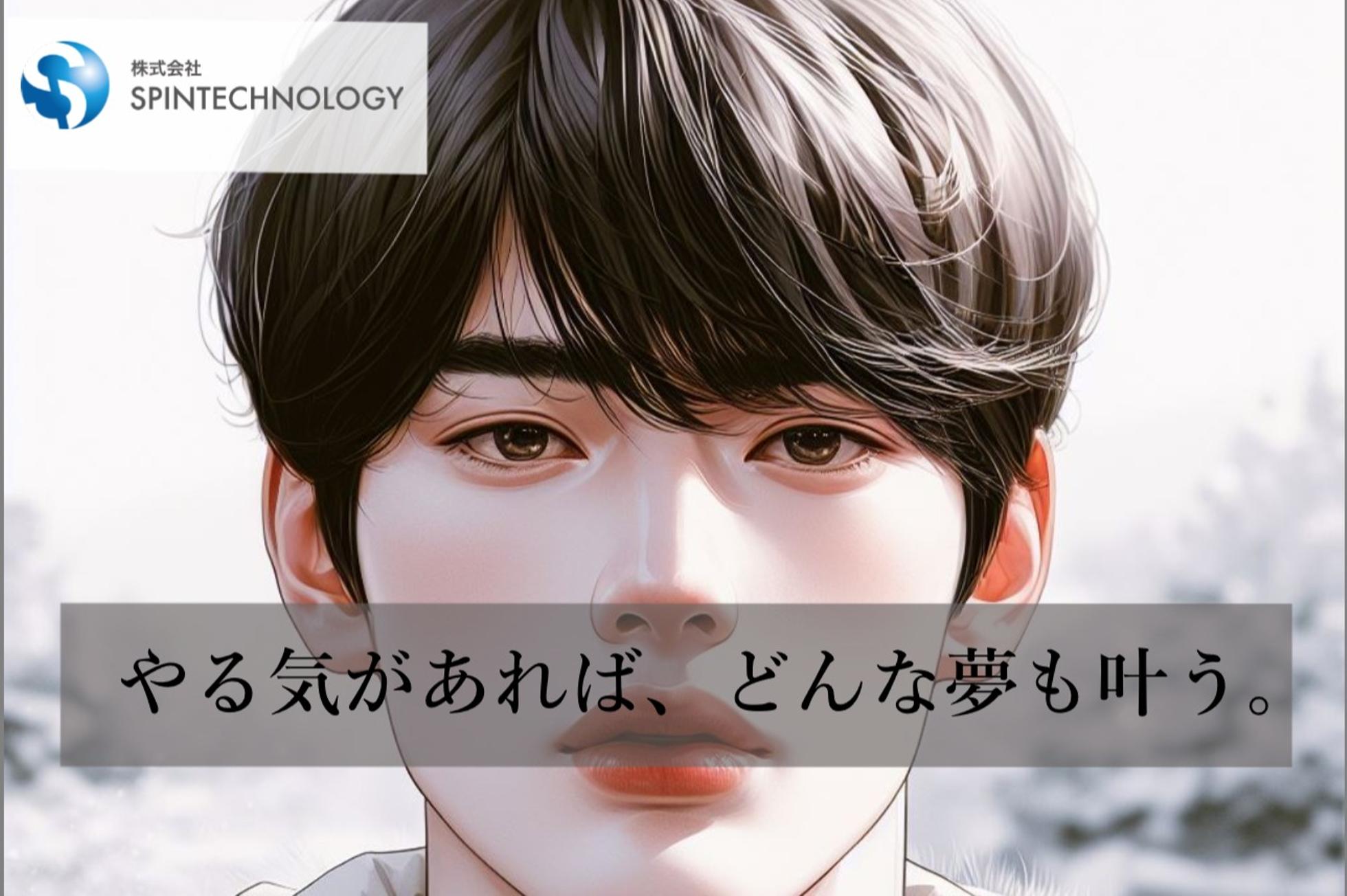 当社は創業間もないベンチャー企業です。 日本一のITベンチャーを目指す上で、問題も発生してくるかと思いますが、 経営理念として「志しむことからすべてがはじまる」と言う経営理念を掲げてます。 志しむと造語を使っていますが、簡潔に言うと志(人生の目的や動機=自己実現したい事)を成し遂げる事を楽しむという事です。 会社の仲間には、必ず幸せになってもらいたい。それが私の嘘偽りのない想いです。 会社と言うのは、1人1人が自己実現を実現する舞台であり、1人1人が主役で1人1人輝く場所です。 今現在、様々な想いを抱えてる人も多いと思います。 今までの人生順風満帆な人、かたや今まで上手くいかず挫折した人、これからが不安な人等、 どんな過去や現在があっても 自分を変えたい!どうにかしたい! と言う想いがあれば、スピンテクノロジーは最後の最後まで仲間の志を成し遂げるまであきらめない! 一緒に協力し時に、時には一緒に悩み、一緒に志しんで行く! そんな仲間と一緒に会社を作っていきたいと思います。
