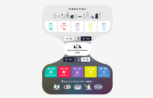 < 認知・周知 ▷ 広告・宣伝 ▷ 制作・運用 ▷ 接客・販売 ▷ 調査・開発>LIWの5つのメイン機能を一元管理し、データ分析が可能。