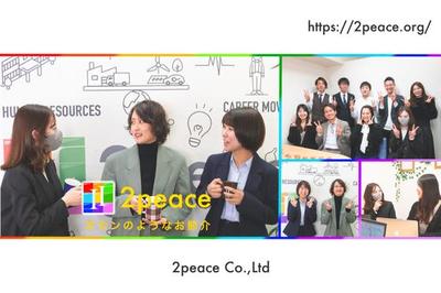 株式会社2peaceは「オカンのようなお節介で温かく」をスローガンに、企業の採用活動と求職者の転職活動支援をメインに事業を展開している、大阪のベンチャー企業です。 人財紹介/人財派遣/人財教育/HRコンサルティングまで、人に関わるあらゆる悩みを解決します。 「無資格・未経験」でも社会参画できる仕組みを作り出し、採用市場の変化と、採用現場の動向をしっかりと捉え、企業も働く人も前向きに社会貢献ができる世の中を、人財事業を通じて創出していきます。 【事業内容】 「人財紹介」 全国求人案件数20000件。求職者エントリー数1000人超/月を取り扱っています。「求職者ファースト」の寄り添い方で、全国の転職市場を支えます。求職者だけではわからないこと、判断しづらいことも、転職までの伴走支援でサポートします。20代〜40代の転職を積極的に応援しています。また製造業の転職支援も積極的に取り組んでおり、大手製造会社から地方の町工場まで幅広く取り扱っています。 「人財派遣」 関西を中心に幅広く対応しています。特に製造/販売/営業/事務といった安定した継続的な仕事に強く、就職後も徹底した伴走サポートを行います。 「HRコンサルティング」 条件だけでは差別化できない企業を中心に、採用の「見える化」を基準に採用につながるコンサルティングを行っています。MVVの再設定から、労務環境の改善、人事評価制度の設定まで、人財紹介会社の領域を超えて伴走支援を行なっています。 「インターン生の採用」 新卒採用支援を行いながら、自社のインターン生採用も取り入れています。企業には社員が、学生にはインターン生がアプローチを行う形式を採用しています。学生の理想の就活を形にするために、学生ならではの発想とポテンシャルで活躍の場を提供しています。 「キャリア教育事業」 中高生を中心に、働く意味と働くことに対する考えを、遊びの中から学ぶ「アソビカケル」事業を展開しています。職能ではなく「人間力」を養うきっかけをキャリア教育の中から創っていきます。 「SES事業/エンジニア雇用」 エンジニア人財の雇用を支えるために、2024年からSES事業の展開をしています。正社員、契約社員、業務委託と働き方も様々になります。全国の案件を扱い、エンジニア能力に合わせて幅広い提案ができるように取り扱っています。 【今後の展望】 2025年には、社員数を20名に増やす計画です。各業種の担当を専任で任せ、より広い業種に、より深く関われるように事業規模拡大を計画しています。またM&Aによる事業規模拡大も計画しており、人財会社だけでは満たせなかった領域まで一貫したサポートができるように展開していく計画です。 売り上げ規模と共に、当社のサービスを通して世の中にどんな変革を与えられるかを大切にしています。また、社会問題にアプローチできる事業を設計して、社会貢献を軸に世の中を変えられるサービスを創り「あなたにとって唯一無二の存在」となることを目指します。 【熱くなれる仲間募集】 若手人財を中心に、人の想いに共感し、ともに成長できる仲間がたくさん集まっています。 ・人の事を大切にできる方。 ・一丸となって、事業を作り上げたい方。 ・挑戦することを恐れず、成長意欲の高い方。