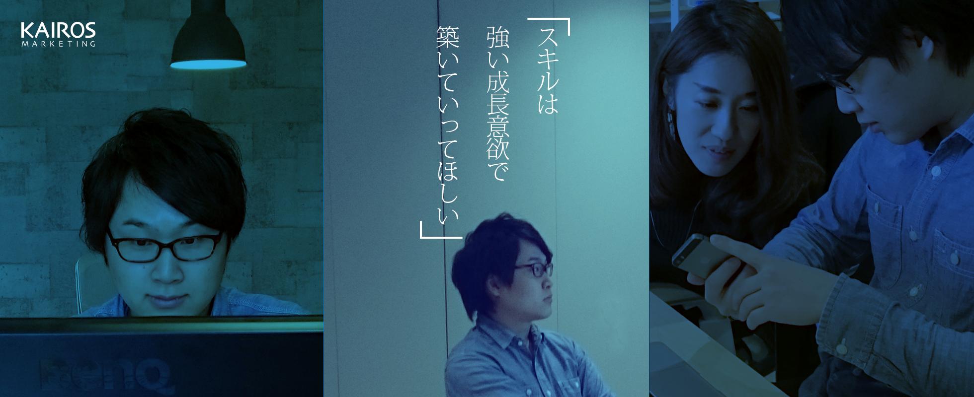今、IT市場において非常に注目されている業界の一つが、このMA(マーケティングオートメーション)業界。 そんな業界内において、スタートアップでもある私たち。 だからこそ、一人ひとりが携わる仕事は重く、深く、そして楽しい。 私たちは、自ら開発したマーケティングオートメーション「Kairos3」を、広報&マーケティングから販売、サポートまですべて一貫して手がけていますので、あなたが選べる職種はいくつかあります。 たとえば、 ・マーケティング ・インサイドセールス ・カスタマーサポート(カスタマーサクセス) ・コンサルティング営業 経験やスキルは問いません。 これからあなたが身につけるであろう経験は、あなたの「強い成長意欲」で築いていってもらえればと思います。 ただし、下記の項目はすべて求めます。 ・当社の理念に共感している ・ベンチャー企業に興味がある ・「これはやりきった!」というストーリーを1つでも持っている ・チャレンジ意欲がある ・チームの一員として貢献できる