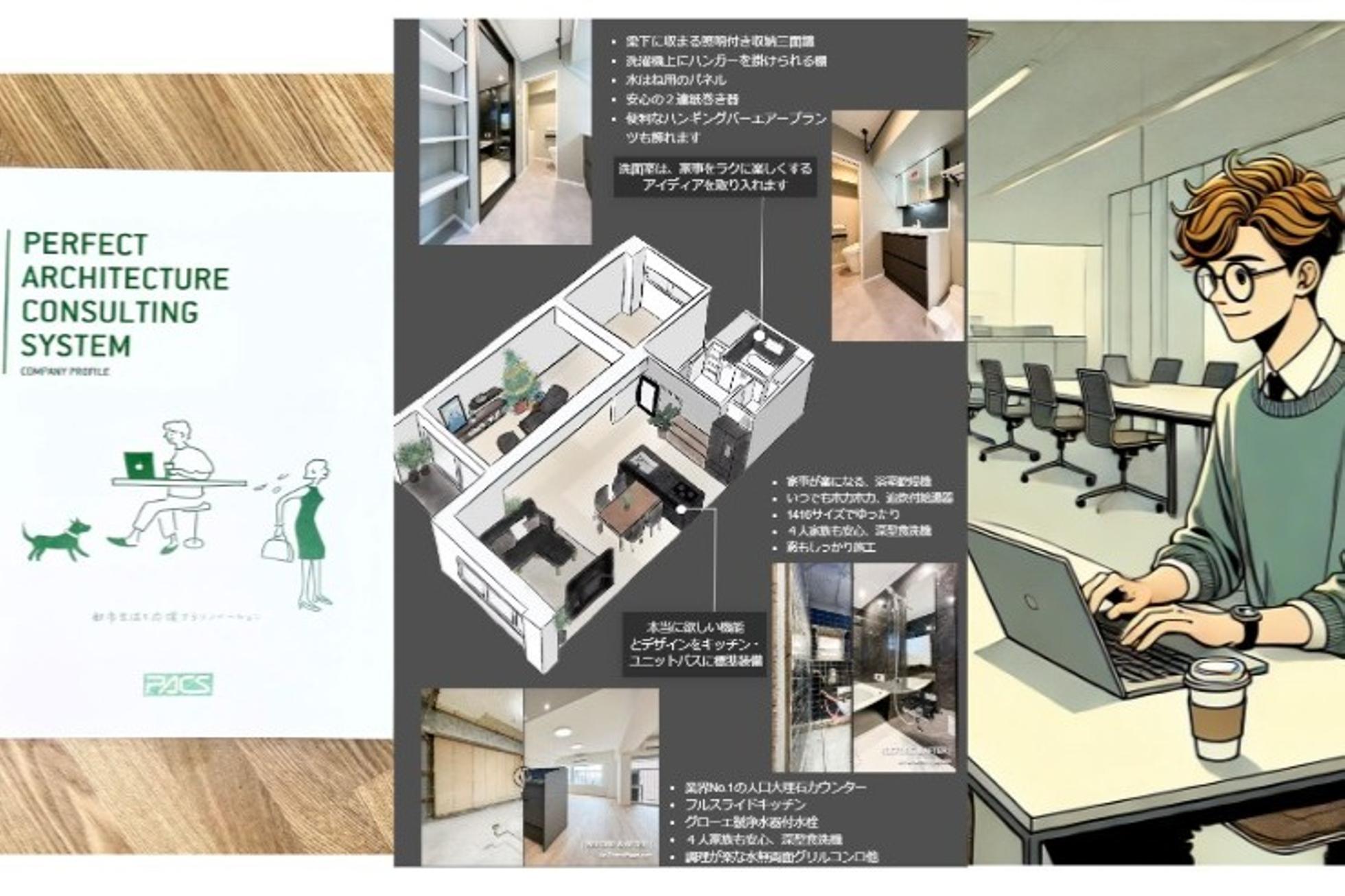 パックシステムでは、既存のビジネスに捕らわれない、新しいスタイルを考えます。業務としては、自社でマンションを仕入れ、自社で設計施工し販売するという一般的な買取再販ビジネスをしています。その中で、完成前から商品を紹介できるCGを作成したり、工事では近隣の方への騒音を配慮したプレカット施工の研究をしたり、プレカットの為の室内測量の仕組みやソフトを開発したりしています。このような様々な活動をより多くの方に、分かり易くお伝えしたいと考えます。