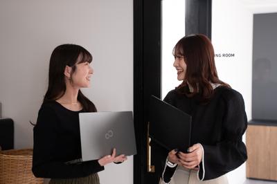 代表の林と営業、タレマネメンバーの交流のようす。当社では役職にかかわらずオープンな雰囲気でのコミュニケーションが特徴です。部署やプロジェクト間での情報共有も活発なため、問題に対する対処等の連携も速いスピード感で行なわれます。エンジニアも含め、会社全体が大きなビジョン達成に向けて協力しあう文化です。こうした他愛無い会話からひらめきが生まれ、部署を超えて実際にプロジェクト化へと実行に移ることも珍しくありません。