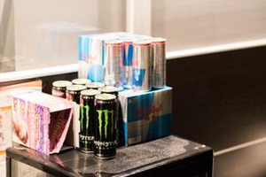 水や炭酸水のほか、栄養ドリンクも常備してます。