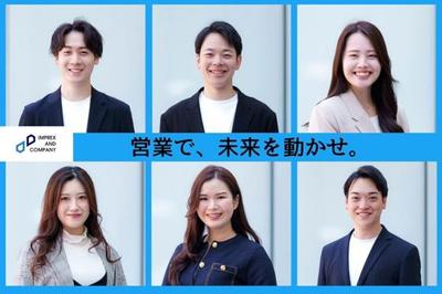 【インプレックスアンドカンパニーのご紹介】 リクルート出身のトップマネージャー達が創業した、営業コンサルティングの会社です。 2010年にサービスを開始し、15年で成長は100倍、全国8つの拠点を持ち、 支援実績は400社、2,000商材に達し、日本や世界を代表する大手・ユニコーン・メガベンチャー、多様な業界企業がクライアントです。 すべての企業が強い営業組織を持つことを『アタリマエ』に。 そんな環境を作りたくサービスを展開しています。 <ぜひ弊社採用サイトをご覧ください> ■カジュアル面談サイト:https://www.zero-kyori-saiyo.jp/ ■企業サイト:https://www.imprexc.jp/ ■サービスサイト:https://sales-dev.jp/ ■トップメッセージ:https://imprexc-recruit.sha-site.jp/about/message.html ■メンバーご紹介:https://imprexc-recruit.sha-site.jp/interview/interview-33816.html ※応募は「話を聞きに行きたい」ボタンより24時間受け付けております! ▼サービス一覧 圧倒的な営業力・全国1万人のセールスパワーを持ち、以下の4つのソリューションを提供しています。 ①営業コンサルティング ②営業アウトソーシング ③ビジネスマッチングサービス ④営業職特化のセットアップ型派遣 ⑤営業総合代理店 ⑥クラウド営業部 【全国営業所】 ◆東京本社 住所:東京都港区虎ノ門1-23-1 虎ノ門ヒルズ森タワー18F ◆札幌営業所 住所:北海道札幌市中央区北5条西5丁目2番地12住友生命札幌ビル7階 ◆秋葉原営業所 住所:東京都千代田区神田和泉町1-7-2 S-Glanzビル4階 ◆名古屋営業所 住所:愛知県名古屋市東区泉1-15-14 アルピニストビル6FB ◆大阪営業所 住所:大阪府大阪市淀川区西中島5-11-9 新大阪中里ビル3階 ◆広島営業所 住所:広島県広島市中区大手町2丁目1番6号 大手町高橋ビル3A-F ◆福岡営業所 住所:福岡県福岡市中央区大名1丁目2番23号 ビジネス・ワンけやき通りビル3階