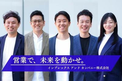 【インプレックスアンドカンパニーのご紹介】 リクルート出身のトップマネージャー達が創業した、営業コンサルティングの会社です。 2010年にサービスを開始し、15年で成長は100倍、全国8つの拠点を持ち、 支援実績は400社、2,000商材に達し、日本や世界を代表する大手・ユニコーン・メガベンチャー、多様な業界企業がクライアントです。 すべての企業が強い営業組織を持つことを『アタリマエ』に。 そんな環境を作りたくサービスを展開しています。 <ぜひ弊社採用サイトをご覧ください> ■カジュアル面談サイト:https://www.zero-kyori-saiyo.jp/ ■企業サイト:https://www.imprexc.jp/ ■サービスサイト:https://sales-dev.jp/ ■トップメッセージ:https://imprexc-recruit.sha-site.jp/about/message.html ■メンバーご紹介:https://imprexc-recruit.sha-site.jp/interview/interview-33816.html ※応募は「話を聞きに行きたい」ボタンより24時間受け付けております! ▼サービス一覧 圧倒的な営業力・全国1万人のセールスパワーを持ち、以下の4つのソリューションを提供しています。 ①営業コンサルティング ②営業アウトソーシング ③ビジネスマッチングサービス ④営業職特化のセットアップ型派遣 ⑤営業総合代理店 ⑥クラウド営業部 【全国営業所】 ◆東京本社 住所:東京都港区虎ノ門1-23-1 虎ノ門ヒルズ森タワー18F ◆札幌営業所 住所:北海道札幌市中央区北5条西5丁目2番地12住友生命札幌ビル7階 ◆秋葉原営業所 住所:東京都千代田区神田和泉町1-7-2 S-Glanzビル4階 ◆名古屋営業所 住所:愛知県名古屋市東区泉1-15-14 アルピニストビル6FB ◆大阪営業所 住所:大阪府大阪市淀川区西中島5-11-9 新大阪中里ビル3階 ◆広島営業所 住所:広島県広島市中区大手町2丁目1番6号 大手町高橋ビル3A-F ◆福岡営業所 住所:福岡県福岡市中央区大名1丁目2番23号 ビジネス・ワンけやき通りビル3階