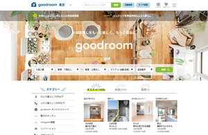 goodroomのサイト、独自に選定したデザイン性の高い物件に加えて、良い点だけでなく不便な点も紹介する物件ストーリーなどによって、多くのユーザから支持を集めています。