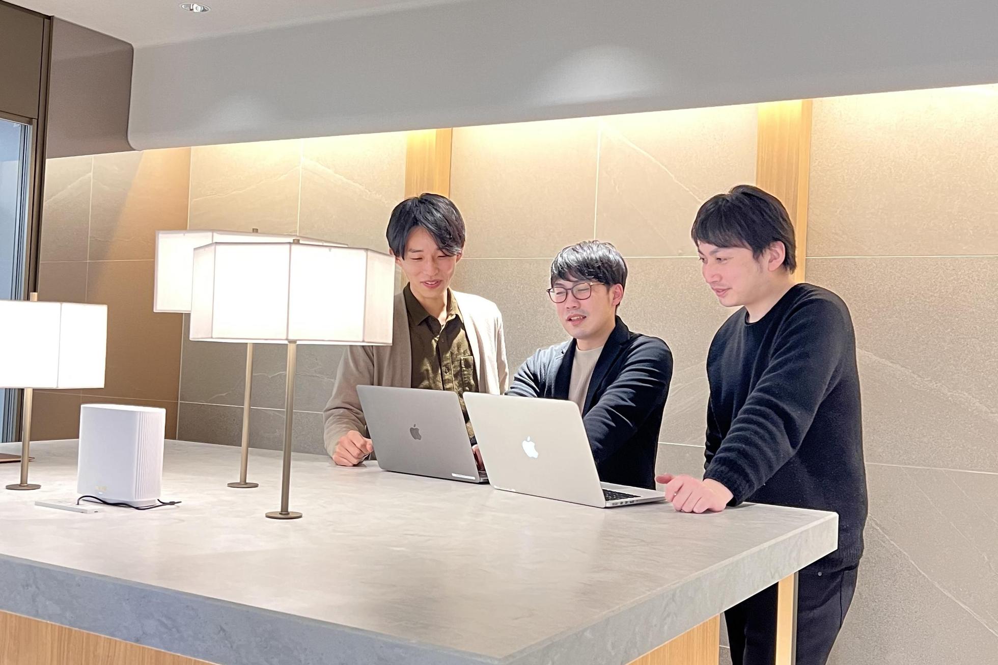 よくメンバーが一緒に集まり、情報共有や相談をしています。未経験で入社したエンジニアも多く在籍しており、チーム一丸となって成長できる環境があります!
