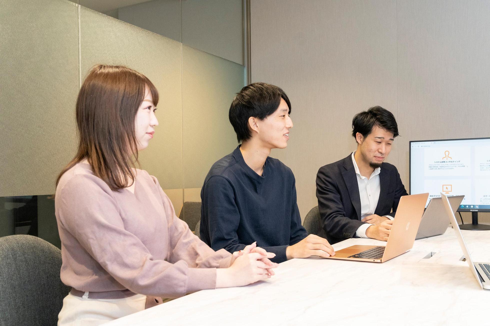 よくメンバーが一緒に集まり、情報共有や相談をしています。未経験で入社したエンジニアも多く在籍しており、チーム一丸となって成長できる環境があります!