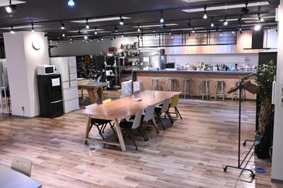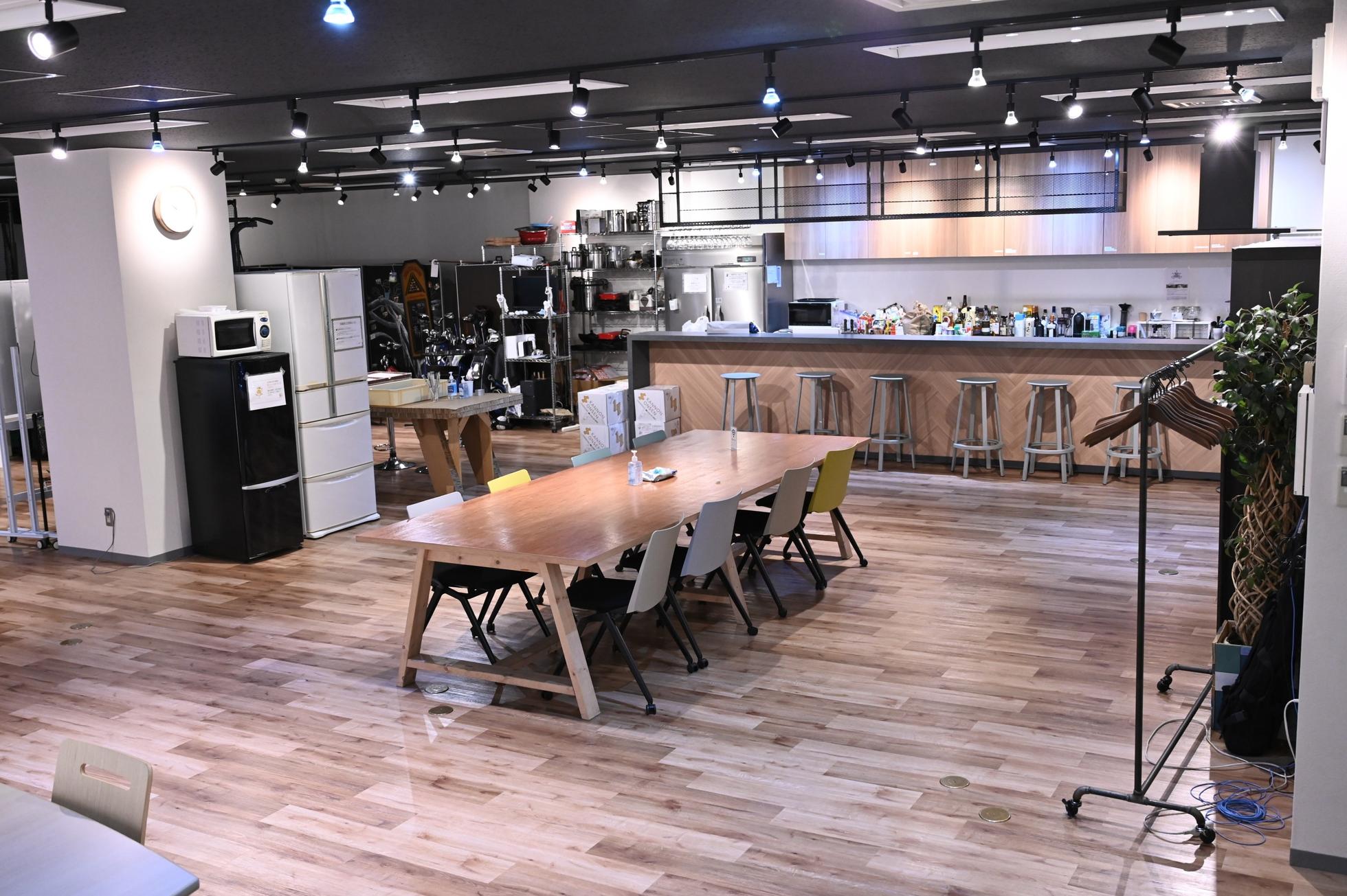 オフィスB1は、広々としたコミュニケーションスペース。キッチンを囲んで自然と会話が生まれ、研修や社内イベントの場としても活用。ビリヤードや卓球台もあり、サークル活動も行われています。