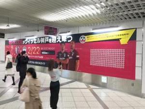 ビール半額を訴求した中吊り広告では、インパクトのあるデザインで大阪中心部の電車内をジャックし、来場促進を測りました。