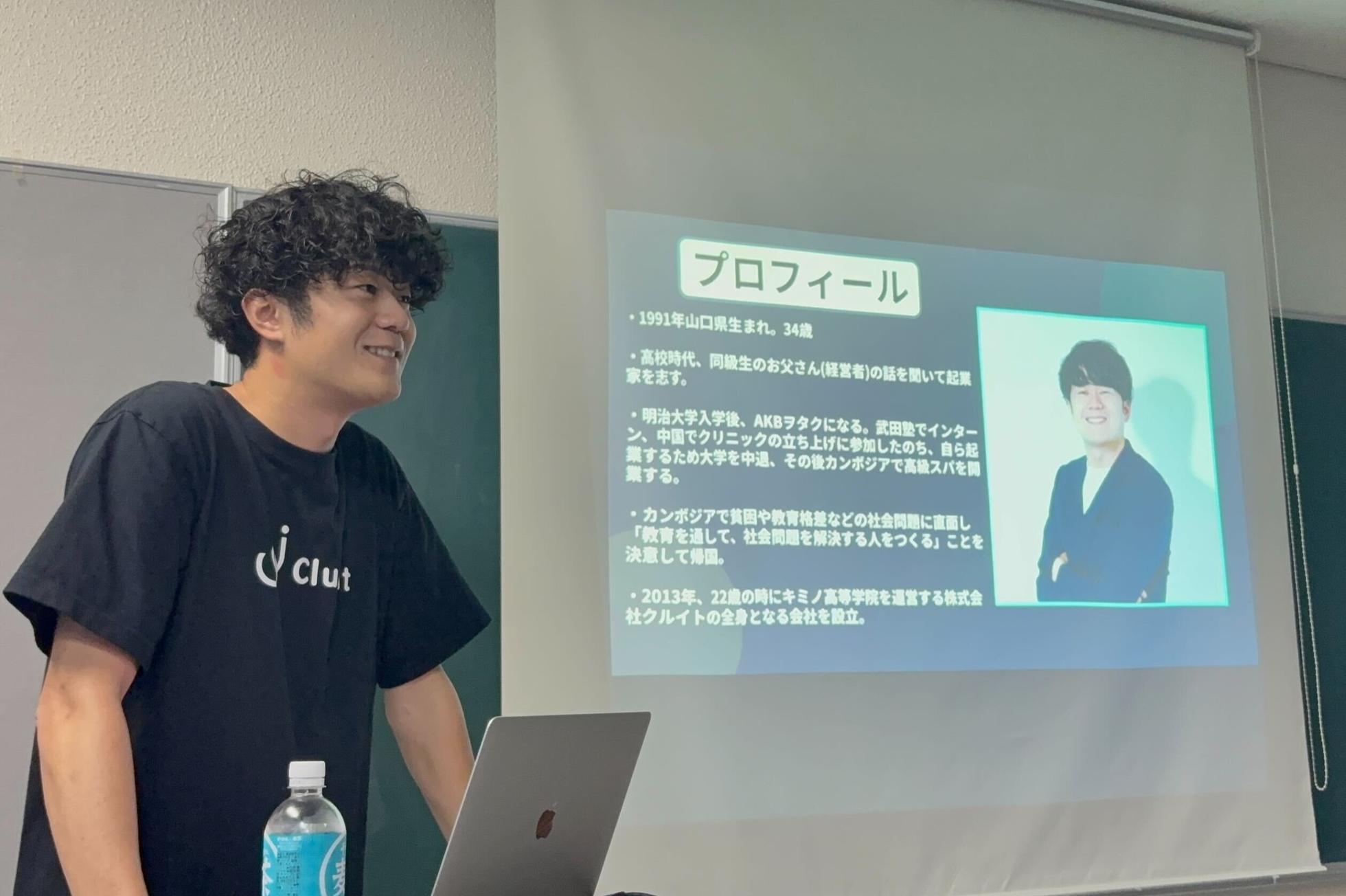 株式会社クルイト代表取締役社長です。 大学在学中より、両親が教員ということもあり昔から漠然と教育分野で会社を起こしたい!と考え,教育業界を知るために塾でインターンシップに参画 。 「世の中を変える経営者になるためには、圧倒的な実力をつけないといけない」と感じ、まずは教育から一旦離れ、実力をつけてから2年後に起業をしようと決め、知り合いの経営者の方と中国で医療・スパ事業を起業。 中国での経験で、海外事業の可能性を感じ、当時まだ高級スパが無かったカンボジアで21歳の時に大学を中退し、スパを開業(http://lucknuvo.com/lucknuvo_ja.php)。 2ヶ月で黒字化し、なん...