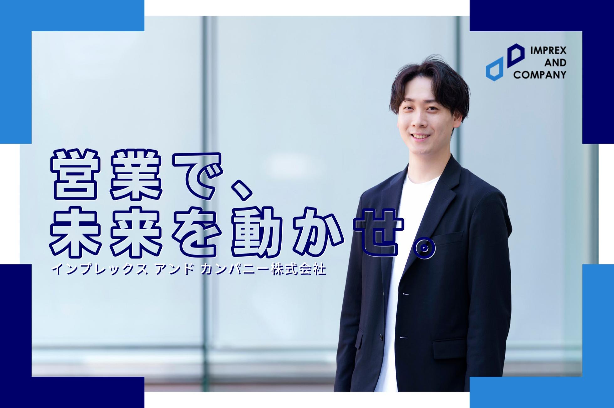 【インプレックスアンドカンパニーのご紹介】 リクルート出身のトップマネージャー達が創業した、営業コンサルティングの会社です。 2010年にサービスを開始し、15年で成長は100倍、全国8つの拠点を持ち、 支援実績は400社、2,000商材に達し、日本や世界を代表する大手・ユニコーン・メガベンチャー、多様な業界企業がクライアントです。 すべての企業が強い営業組織を持つことを『アタリマエ』に。 そんな環境を作りたくサービスを展開しています。 <ぜひ弊社採用サイトをご覧ください> ■カジュアル面談サイト:https://www.zero-kyori-saiyo.jp/ ■企業サイト:https://www.imprexc.jp/ ■サービスサイト:https://sales-dev.jp/ ■トップメッセージ:https://imprexc-recruit.sha-site.jp/about/message.html ■メンバーご紹介:https://imprexc-recruit.sha-site.jp/interview/interview-33816.html ※応募は「話を聞きに行きたい」ボタンより24時間受け付けております! ▼サービス一覧 圧倒的な営業力・全国1万人のセールスパワーを持ち、以下の4つのソリューションを提供しています。 ①営業コンサルティング ②営業アウトソーシング ③ビジネスマッチングサービス ④営業職特化のセットアップ型派遣 ⑤営業総合代理店 ⑥クラウド営業部 【全国営業所】 ◆東京本社 住所:東京都港区虎ノ門1-23-1 虎ノ門ヒルズ森タワー18F ◆札幌営業所 住所:北海道札幌市中央区北5条西5丁目2番地12住友生命札幌ビル7階 ◆秋葉原営業所 住所:東京都千代田区神田和泉町1-7-2 S-Glanzビル4階 ◆名古屋営業所 住所:愛知県名古屋市東区泉1-15-14 アルピニストビル6FB ◆大阪営業所 住所:大阪府大阪市淀川区西中島5-11-9 新大阪中里ビル3階 ◆広島営業所 住所:広島県広島市中区大手町2丁目1番6号 大手町高橋ビル3A-F ◆福岡営業所 住所:福岡県福岡市中央区大名1丁目2番23号 ビジネス・ワンけやき通りビル3階