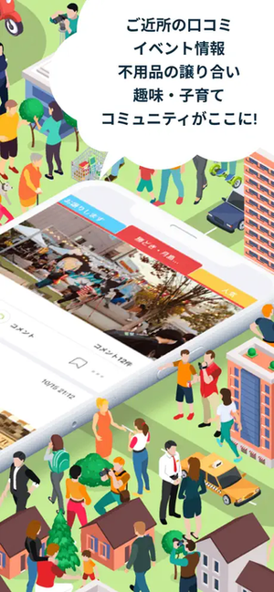 地域コミュニティアプリ「ピアッザ」を自社開発しています。「おしえて!」「お譲りします!」「イベント告知」など、ご近所ならではの情報や、モノ・コトのシェアが気軽にできます。
