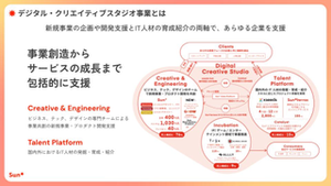 新規事業を立ち上げたい企業、事業成長したいスタートアップに対し最適なチームを編成し、デジタルテクノロジーとクリエイティブを駆使して社会をアップデートする価値創造を実現するサービスです。