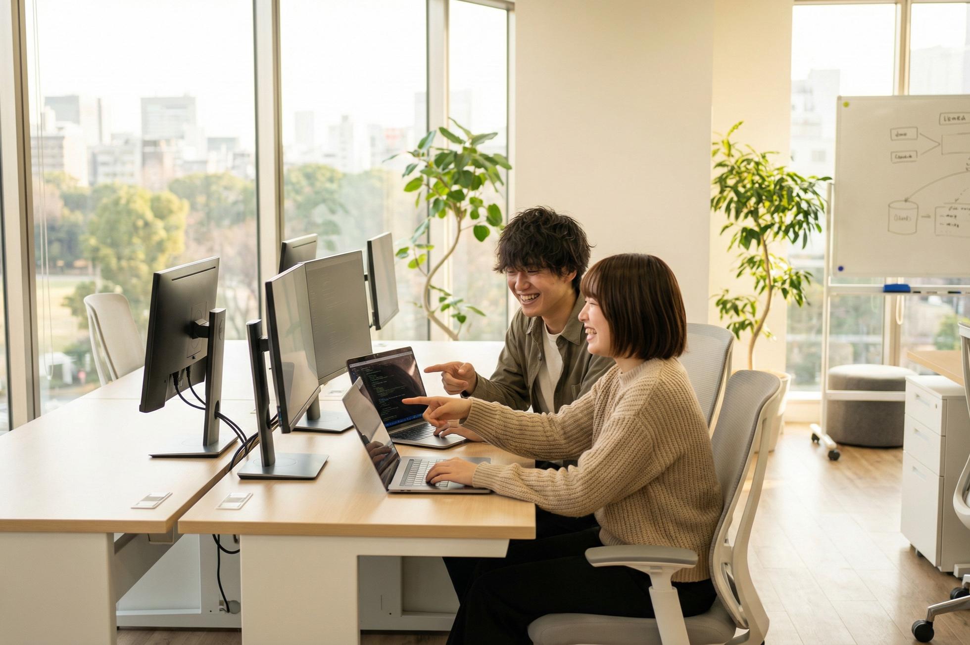 リモートで自分の環境に合った働き方が出来ます!定期的に綺麗なコワーキングオフィスで顔を合わせながら仕事をして、コミュニケーションを図っています。国内外でワーケーションを利用する社員もおり、柔軟な働き方をしています。