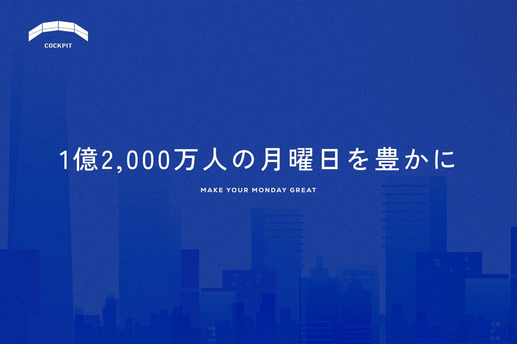 ◼Purpose(存在意義) 1億2,000万人の月曜日を豊かに ◼Core Value(理念) カッコよくセクシーに生きる カッコ良さとは、各々、そしてCockPitが持つエゴを追い続けること。 セクシーとは、周りから見て魅力的であること。 無意識のうちに自らの生き様、在り方を諦め、周りや社会が求める「普通」「一般的」に流されていないか。自らの生き様を大切にし、合わせてセクシー=社会的信用も同時に手に入れる生き方を追い求めていきます。 ◆CockPiが描く未来  ̄ ̄ ̄ ̄ ̄ ̄ ̄ ̄ ̄ ̄ 私たちが思い描くのは、「月曜日が豊か」と思える働き方を社会全体に広げていく未来です。そのために、東京・大阪など主要都市への拠点拡充をはじめ、会社をホールディングス化し、自社サービスのローンチ、業界特化の人材紹介事業を2つ立ち上げることも進めております。さらに、創業依頼初のM&Aも幾つか進行しており、さまざまな領域から“月曜日を豊かにする”仕組みを加速させていく方針です。 単なる人材事業にとどまらず、一人ひとりの“ありたい姿”を具体的なキャリアに結びつけるサポートこそCockPitの強み。その可能性をさらに広げるべく、私たちは挑戦を続け、より多くの人に「月曜日が楽しみになる未来」を届けていきます。 ◆創業の想い  ̄ ̄ ̄ ̄ ̄ ̄ ̄ ̄ ̄ ̄ 高校時代は野球に打ち込み、悲願の甲子園出場も果たしました。卒業後は消防士を志していましたが、東日本大震災や熊本地震のボランティア活動で日本の現実を目の当たりにし、『より広い世界で人を救いたい』という思いが強まり、上京を決意。社会人になってから兼業で始めた事業が、現在のCockPitの基盤となりました。 その中で、多くの方が月曜日を憂鬱に感じてしまう背景には、“仕事そのものへの印象”に根深い課題があるのではないかと考えるようになりました。だからこそ、単なる求人の提案にとどまらず、人の人生を前向きに変える仕組みを創ることが必要だと感じたのです。条件だけでなく、仕事を糸口に人生全体をより充実させる。それを象徴するのが、私たちが掲げる『カッコよくセクシーに生きる』というCore Value(理念)です。 誰かが一歩を踏み出せば、その周囲にもポジティブな変化が広がり、月曜日を楽しみにできる人が増えると信じています。