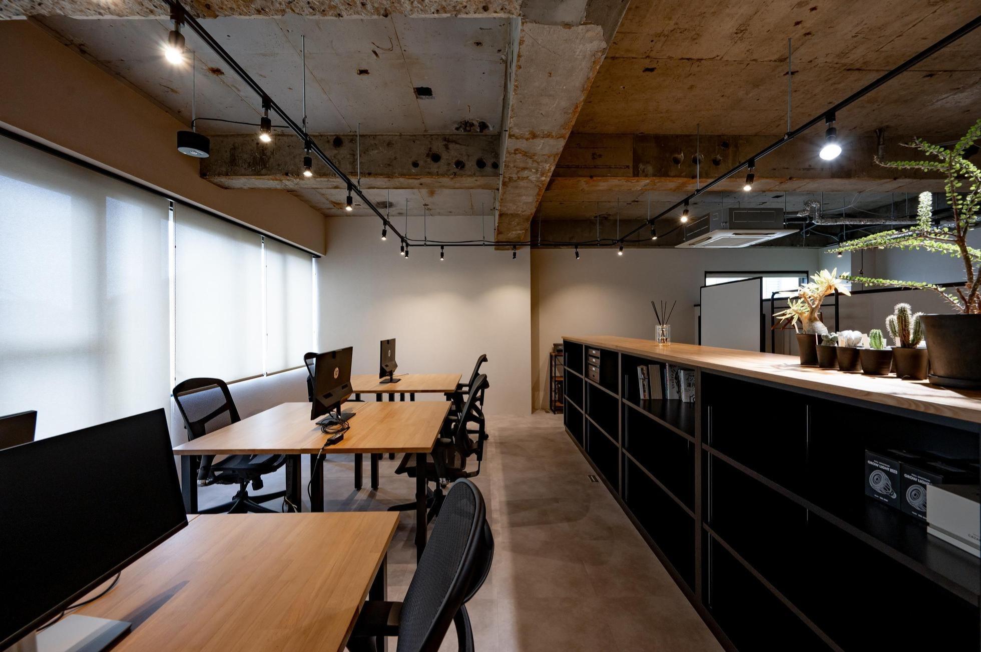 早朝のオフィス風景。まちなかでアクセス便利です。