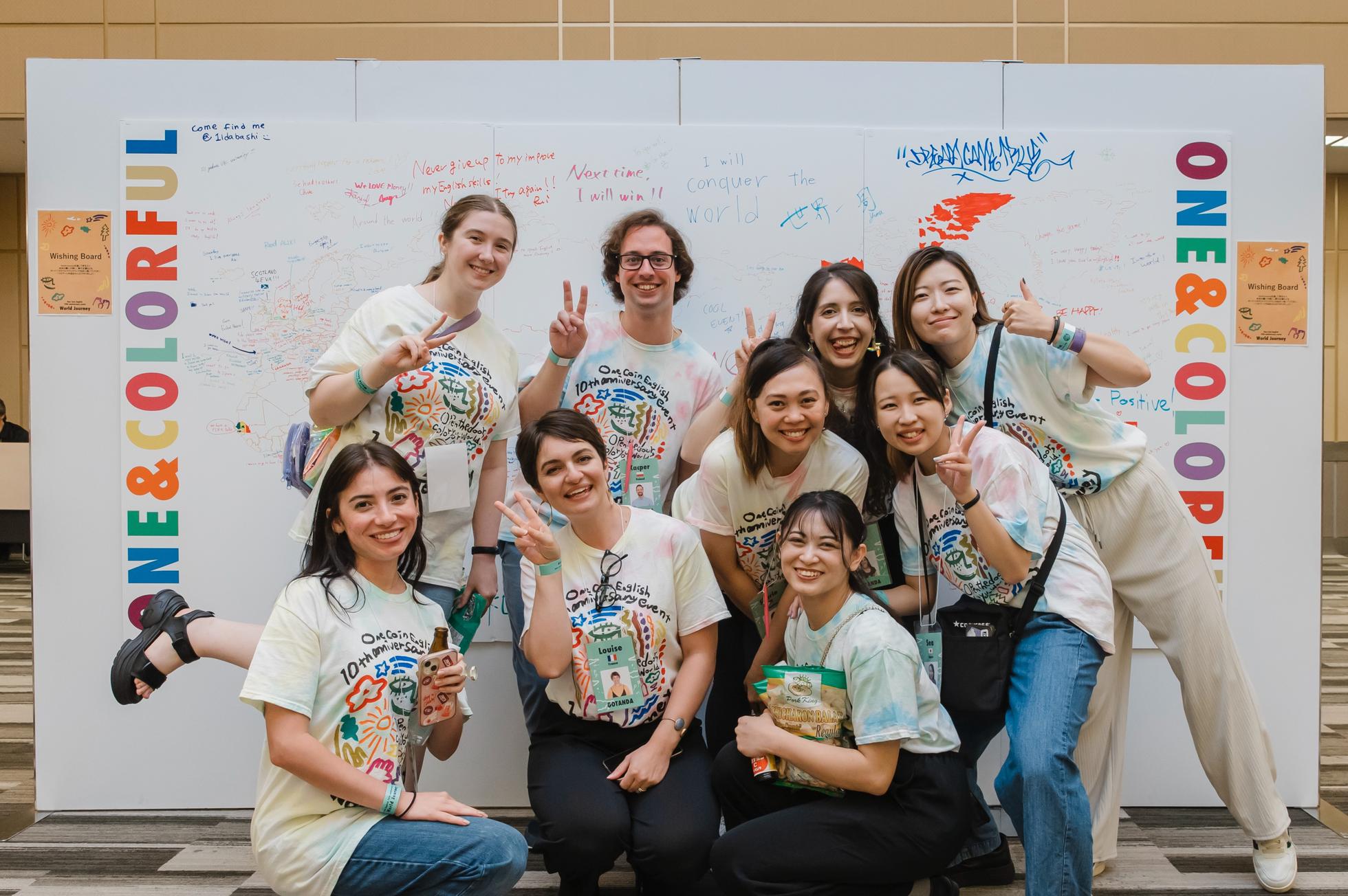 私たちのビジョンは「ONE & COLORFUL」 多様性を尊重しながら、想いをひとつにして歩んでいける世界をつくることです。 「COLORFUL」は、それぞれの違いを大切にし、 人が自分らしく輝ける社会を意味します。 そして「ONE」は、そんな多様な人たちが信頼し合い、 共に目標に向かって進んでいく理想の姿を表しています。 私たちは、英語教育を通して多様な人がつながり、お互いの違いを認め合いながら共に成長できる社会を目指しています。 それが、ワンコイングリッシュのミッションである 「GX(グローバルトランスフォーメーション)」の推進です。