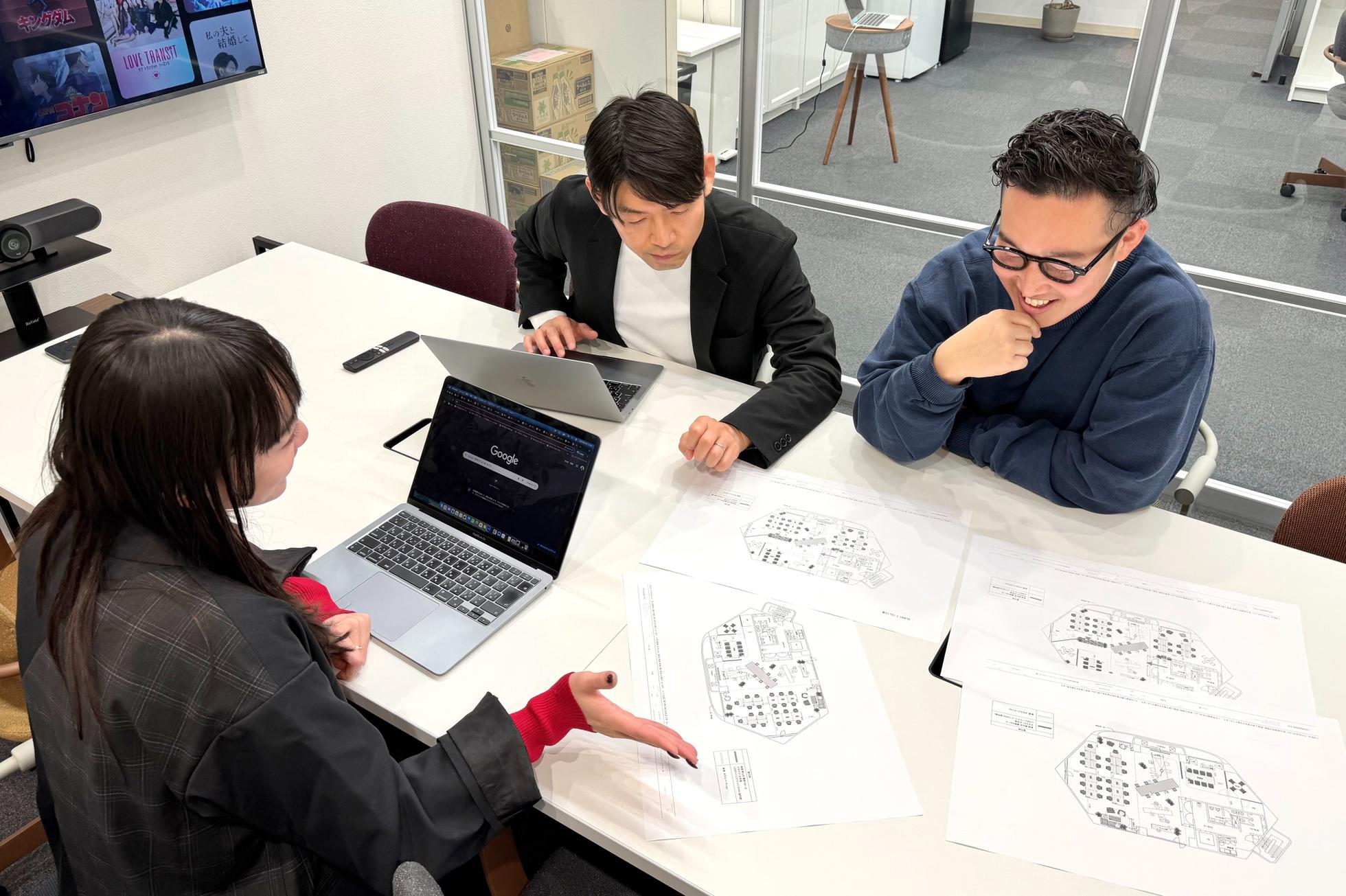 社内MTG風景 | 社内のデザイナーと協力してプロジェクトを進めていきます。若手メンバーも多く和気あいあいとした雰囲気です!